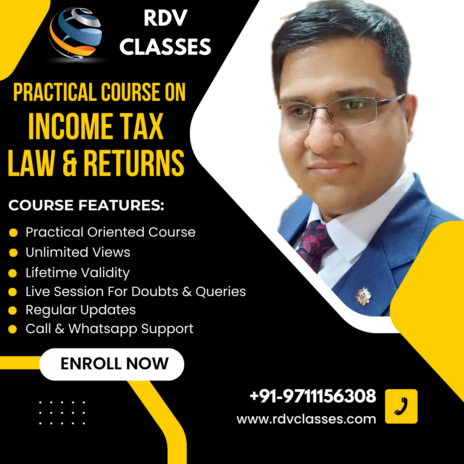 He has more than 10 years of experience in Direct Taxes, Audit He is founder RDV Classes. He has delivered number of seminars/workshops and corporate training on Income Tax & GST and trained many professionals and students. His key area and specialisation in Income Tax motivate him to teach students with simplified & practical approach.